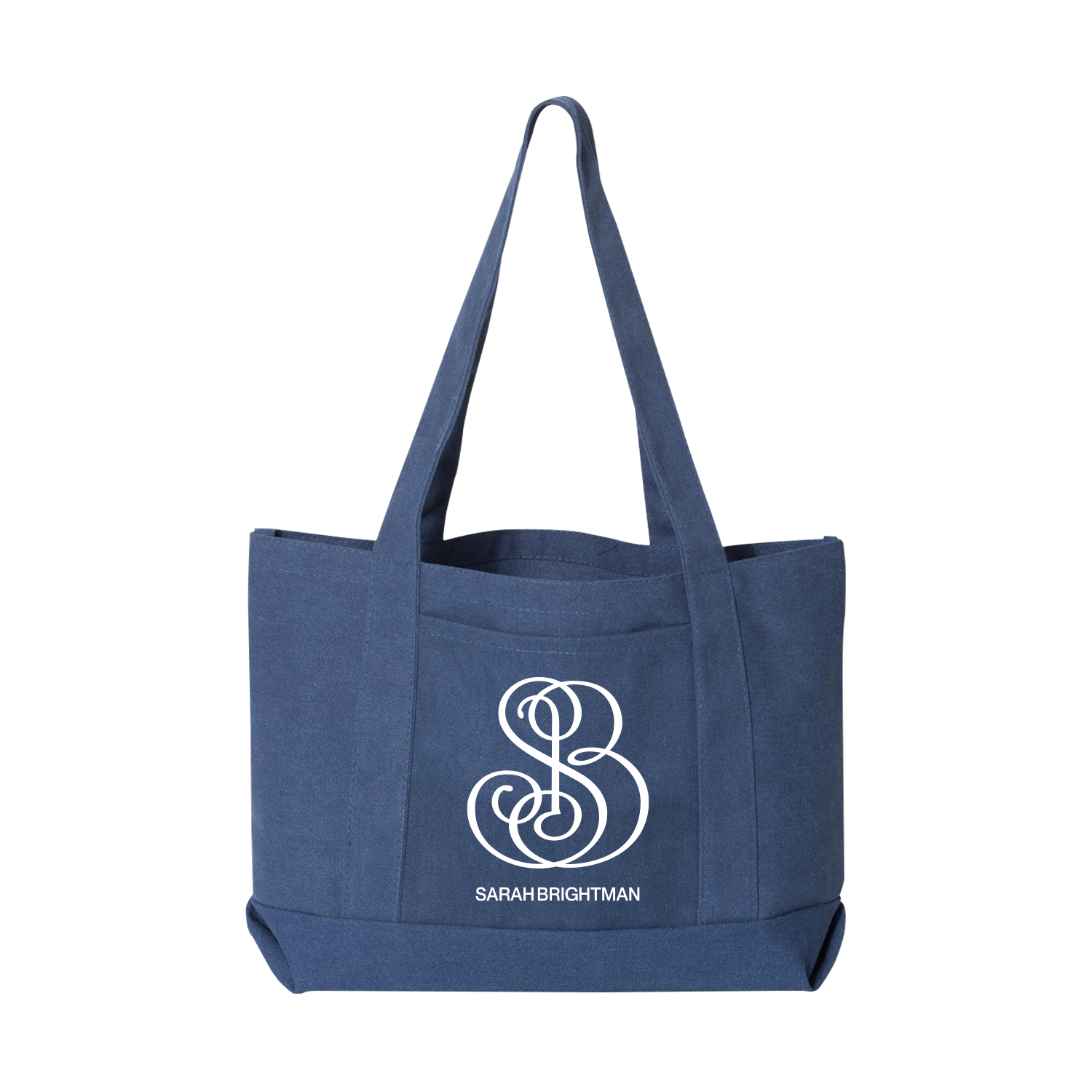 100% Cotton canvas bag with 24" handles and an exterior pocket featuring Sarah Brightman branding.